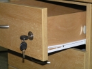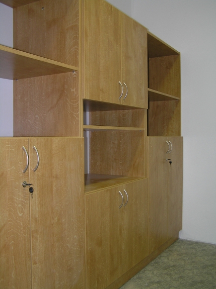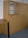 Kancelářská sestava je vyrobena z laminované dřevotřískové desky v barvě dubu. Hrany jsou olepeny 2 mm silnou ABS páskou.