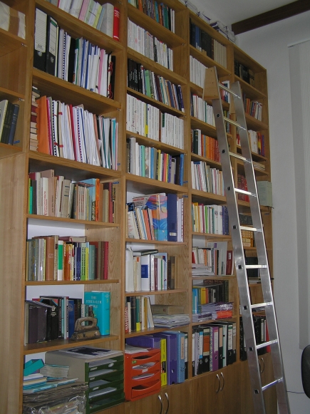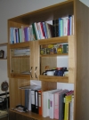 Vysoké knihovny jsou vyrobeny z třešňové dýhy.